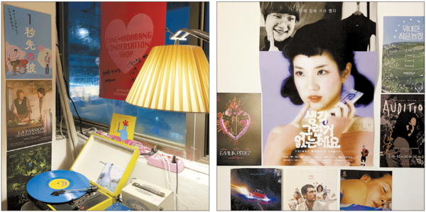 조치원역에서 5분, 조치원 터미널에서 2분 거리에 자리한 시네마 다방은 국내 개봉한 독립 예술 영화들을 시간대별로 상영하고 있다. 사전에 공지된 상영 시간표를 참고해 인터넷으로 표를 예매하거나 현장에서 표를 살 수 있다. 좁은 상가 입구를 지나 계단을 오르면 영화 포스터로 세심히 꾸민 벽이 드러난다. 반 뼘 크기의 스티커 종이에 손 글씨가 꾹꾹 눌러 적힌 영화표가 참 귀엽다. 넓고 쾌적한 상영관에는 큼지막한 소파가 놓여 있어 편안히 반쯤 누워 영화를 감상할 수 있다. 내부의 각종 영화 관련 소품들과 턴테이블, 엽서, 포스터에는 상영관을 운영하는 이들의 정열과 애정이 고스란히 녹아 있다.