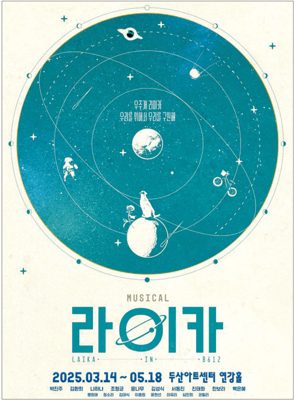 2025년 봄, 뮤지컬 창작진들의 신선한 시도들이 진행 중이다. 뮤지컬 <라이카>(한정석 작, 이선영 곡, 박소영 연출, 3월 14일~5월 18일 두산아트센터 연강홀)는 2021년 창작산실 대본 공모 사업에 당선된 후 완성한 작품이다. 무대 위에는 강아지, 식물, 우주인과 같은 ‘존재’ 혹은 비인간 생명체들이 가득하다. 이 작품은 SF적 상상력에 동물의 권리, 미래 위기까지 담아내 뮤지컬이 가볍다는 통념을 뛰어넘는 행보를 보여준다는 점에서 주목할 만하다.
