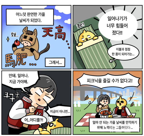 박은준 전문기자 기자의 다른기사 보기 저작권자 © 고대신문 무단전재 및 재배포 금지 관련기사 KUTIME <282화> KUTIME <281화> KUTIME <284화> KUTIME <285화> 개의 댓글 회원로그인 작성자 비밀번호 댓글 내용입력 댓글 정렬 최신순 추천순 답글순 BEST댓글 BEST 댓글 답글과 추천수를 합산하여 자동으로 노출됩니다. 닫기 더보기 댓글삭제 삭제한 댓글은 다시 복구할 수 없습니다. 그래도 삭제하시겠습니까? 비밀번호 닫기 댓글수정 댓글 수정은 작성 후 1분내에만 가능합니다. 본문 / 400 비밀번호 닫기 내 댓글 모음 닫기