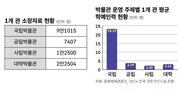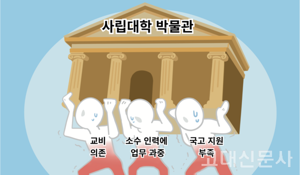 사립대학 박물관은 국보와 보물을 비롯한 수만 점의 유산을 보유하고도 재정과 인력 부족으로 전시와 연구, 보존에 어려움을 겪고 있다. 대학의 자체 예산에 의존해 운영되는 만큼 예산 배정의 우선순위에서 밀려 교육 프로그램과 기획전시의 규모가 축소되는 경우가 다반사다. 전문가들은 재정 기반을 다변화하는 등 자구책을 마련하지 않으면 대학박물관의 고유한 역할 보존이 어려울 것이라 경고한다.