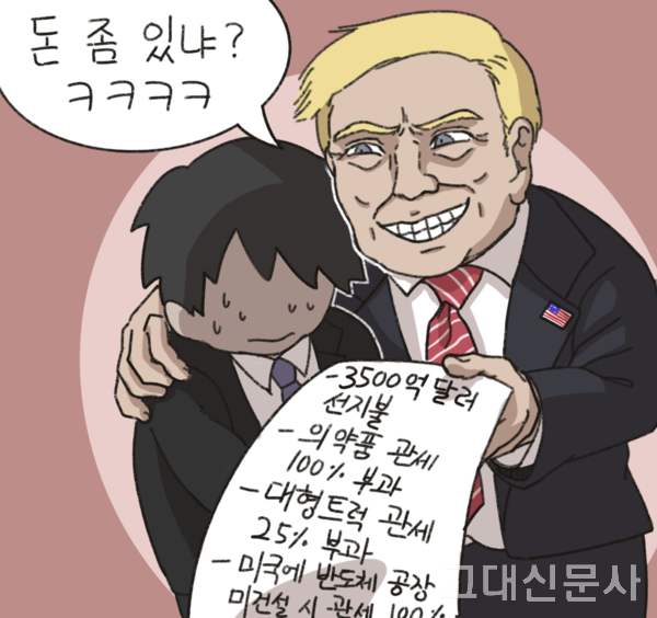 송민제 전문기자 기자의 다른기사 보기 저작권자 © 고대신문 무단전재 및 재배포 금지 관련기사 [석탑만평] 2027호 [석탑만평] 2026호 [석탑만평] 2029호 개의 댓글 회원로그인 작성자 비밀번호 댓글 내용입력 댓글 정렬 최신순 추천순 답글순 BEST댓글 BEST 댓글 답글과 추천수를 합산하여 자동으로 노출됩니다. 닫기 더보기 댓글삭제 삭제한 댓글은 다시 복구할 수 없습니다. 그래도 삭제하시겠습니까? 비밀번호 닫기 댓글수정 댓글 수정은 작성 후 1분내에만 가능합니다. 본문 / 400 비밀번호 닫기 내 댓글 모음 닫기