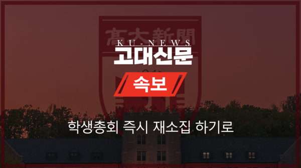 오늘(6일) 서울캠퍼스 SK미래관에서 열린 하반기 전체학생대표자회의 임시회의에서 재심의 끝에 즉시 학생총회 소집이 결정됐다. 오후 9시에 열리며 장소는 4.18기념관에서 정족수를 충족하면 중앙광장으로 옮길 예정이다. 앞서 학생총회는 2시경에 시작했으나 정족수 부족으로 두 번째 안건을 의결하지 못하고 4시에 산회했다.