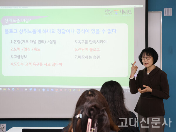 김옥련 씨는 중장년층 수강생들을 주로 가르친다. 김 씨가 강의할 때 가장 신경 쓰는 부분은 낯선 디지털 언어를 쉽게 풀어 설명하는 것이다. “강의실을 나설 때 반드시 이해하고 나가야 한다”는 김 씨의 철학은 동년배 수강생들에 대한 공감에서 출발한다. 그는 수강생들의 어려움을 이해하기에 더욱 진심으로 가르친다.