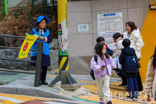 신용자 씨는 여가 시간을 활용해 스쿨존 교통 도우미 활동을 시작했다. 또래 동료들 덕분에 금세 적응해 아이들의 사고를 예방하는 데 자부심을 느끼며 즐겁게 일하고 있다. “체력적으로 고된 순간도 분명 있지만 아이들과 소통하는 잠깐의 순간에서 얻는 행복이 더 커요.”